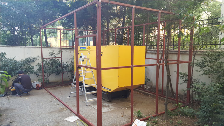 Dış mekanda konumlandırılmış jeneratör veya benzeri makinelerin çıkarttığı yüksek gürültü çevreye rahatsızlık vermektedir. Satın alınan jeneratörlerin kendi kabinlerinin ses izolasyonu değerleri bazı alanlarda yetersiz kalabilmektedir. Bu gibi problemler için dış mahalde bulunan cihazlara ses yalıtımı dolgulu kabin uygulaması yapılarak, çözümler oluşturulabilmektedir. Makinenin çalışma performansının etilenmemesi için kabin oluşturulurken hava sirkülasyonu dikkate alınmalıdır ve kesinlik iç cephede aleve ve ısıya dayanıklı ürünler ile donatılmalıdır.